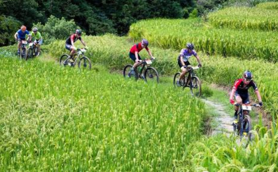 图为选手们在溪西村环境优美的自行车赛道比赛。