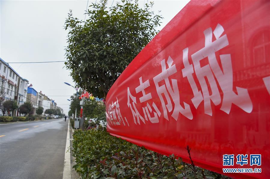 这是在湖北省孝感市孝南区陡岗镇袁湖村拍摄的一处防疫宣传标语(2月10日摄)。 新华社记者胡虎虎摄