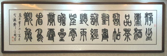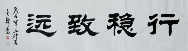 金铸先生之另一书体隶书作品,我等亦可尽叹其笔法之卓强!其隶书作品用笔尤见古之余韵和力之洞达,通幅笔线,能在沉稳中寄素雅,在朴质中寓健强。加之先生常年的艺术功底和文化修养,其隶书作品更是展现出了强烈的现代意味和文人精神!笔墨显硕俊,行间呈佳风,隶之经典,再现书坛!