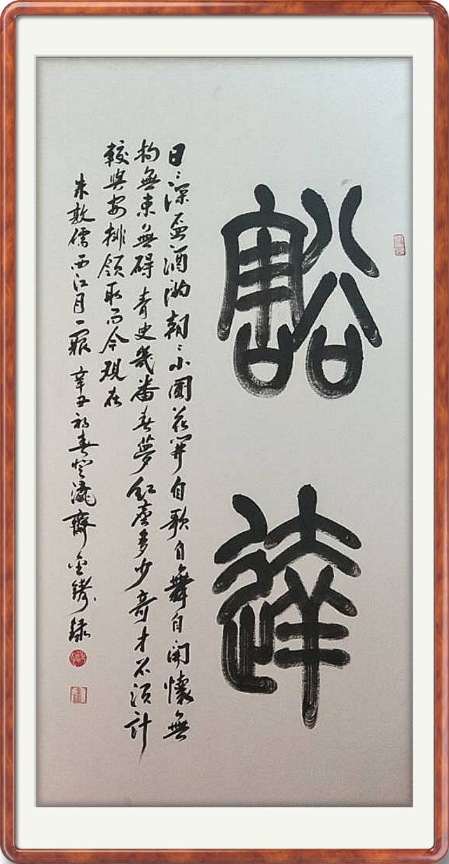翰彰古质,与时舒卷。深谙古典篆隶的书法家少见,而在此基础上,又同具文学、摄影、新闻的“四誉”之人,更是少之又少!显然,郑金铸先生的翰墨功法和艺术名誉是成正比的。而先生自身的艺术道路,也是秉持了稳扎稳打的坚定立场,从不追于俗流,更不逐于时风!可敬建树有所成,翰墨有所功!(著名书画艺术评论家 史峰 2021年8月26日 于览艺斋)