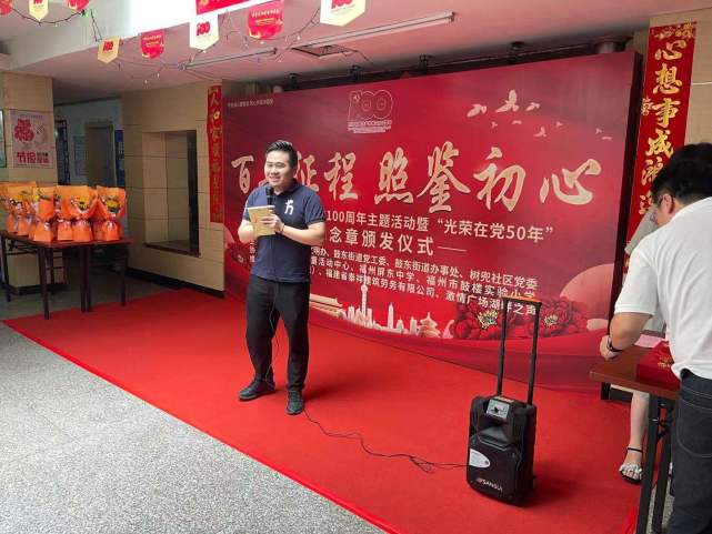 据悉,本次庆祝建党100周年“百年征程 照鉴初心”主题活动暨“光荣在党50年”纪念章颁发活动由福州市鼓楼区委文明办、鼓东街道办事处以及树兜社区联合主办,福建省妇女儿童活动中心以及福建省泰祥建筑劳务有限公司等单位协办,该活动包括为老党员佩戴新党徽;向党旗宣誓,重温入党誓词;向获得“光荣在党50周年”纪念章的老党员颁发纪念章;由单位代表、少先队员为老党员献花及颁发纪念品;两新组织党员大额党费缴纳仪式等。50年党龄老党员及亲属、共建单位代表、区人大代表、社区党员、志愿者、学生代表、居民群众等参与活动。(记者 郭超 吴喜达)