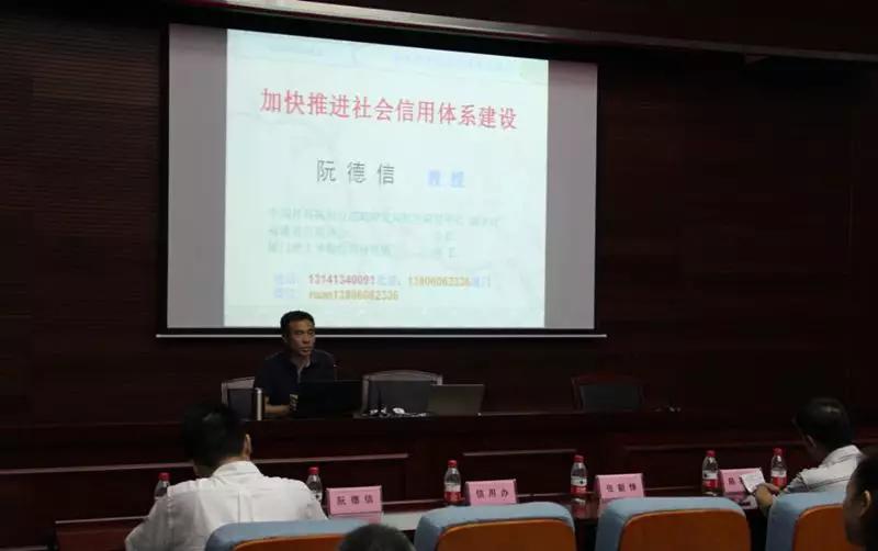 图为中国社科院财经战略研究院信用研究中心副主任、福建省信用协会会长阮德信教授主旨讲座。