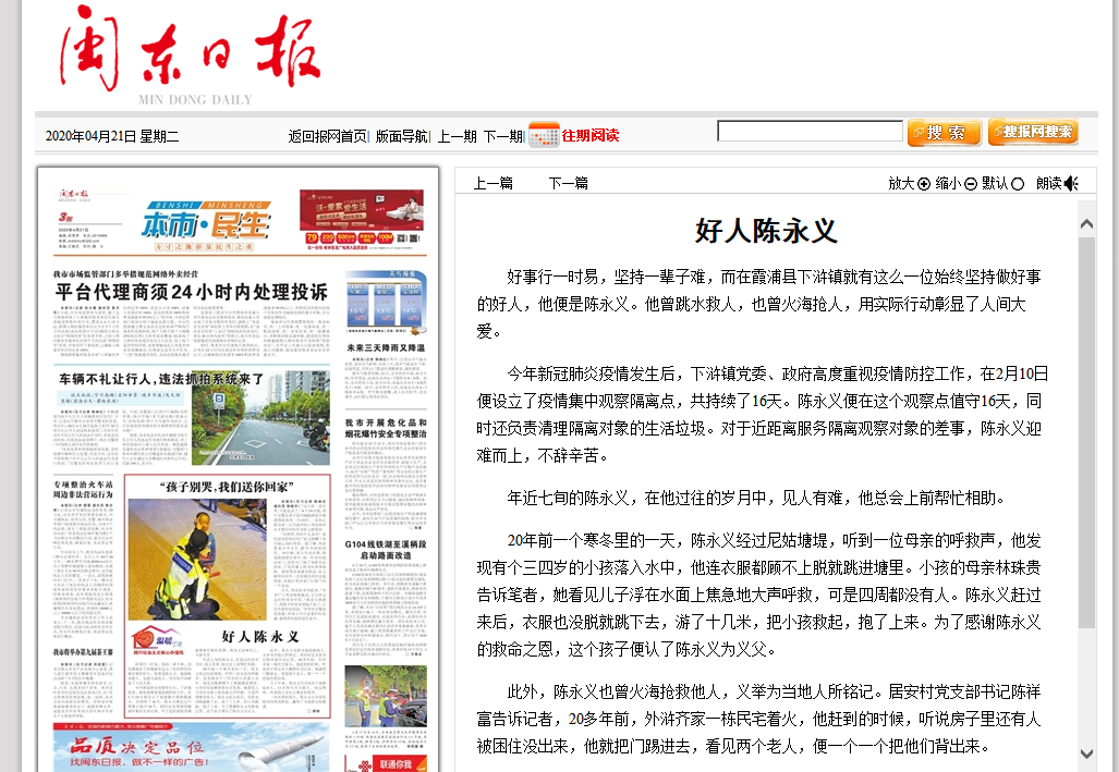 好事行一时易,坚持一辈子难,而在霞浦县下浒镇就有这么一位始终坚持做好事的好人,他便是陈永义。他曾跳水救人,也曾火海抢人,用实际行动彰显了人间大爱。