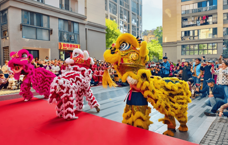 图为现场舞狮表演。