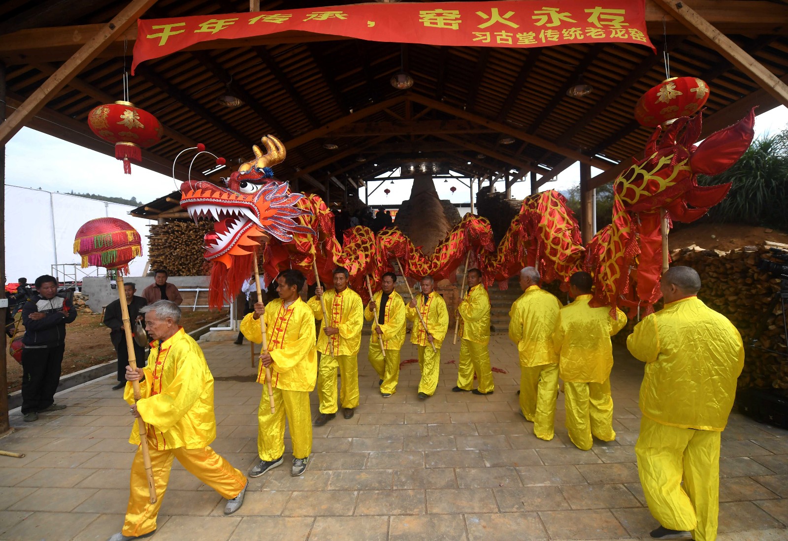 活动现场,建阳水吉当地单体面积最大的习古堂建盏文创园同时正式开园,带有当地浓郁民俗风味的首届建盏龙窑开窑节倾情上演。首次建盏开窑节以建阳水吉当地的竹板龙舞龙表演开篇,祭窑神、诵祭文、献祭礼,窑主率众窑工虔诚祭拜。已经在25米长的龙窑中用柴火烧了三天三夜、又静静还原了两天两夜的习古堂建盏终于在翘首盼望中,迎来了凤凰涅槃般的重生。