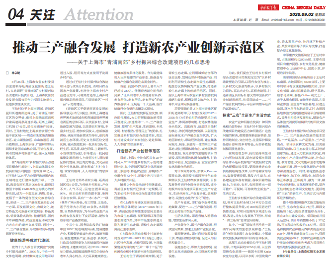 上海青浦南郊乡村振兴综改项目:打造新农产业创新示范区