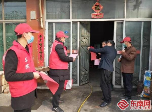文明单位志愿者入户分发移风易俗“战”疫情宣传单