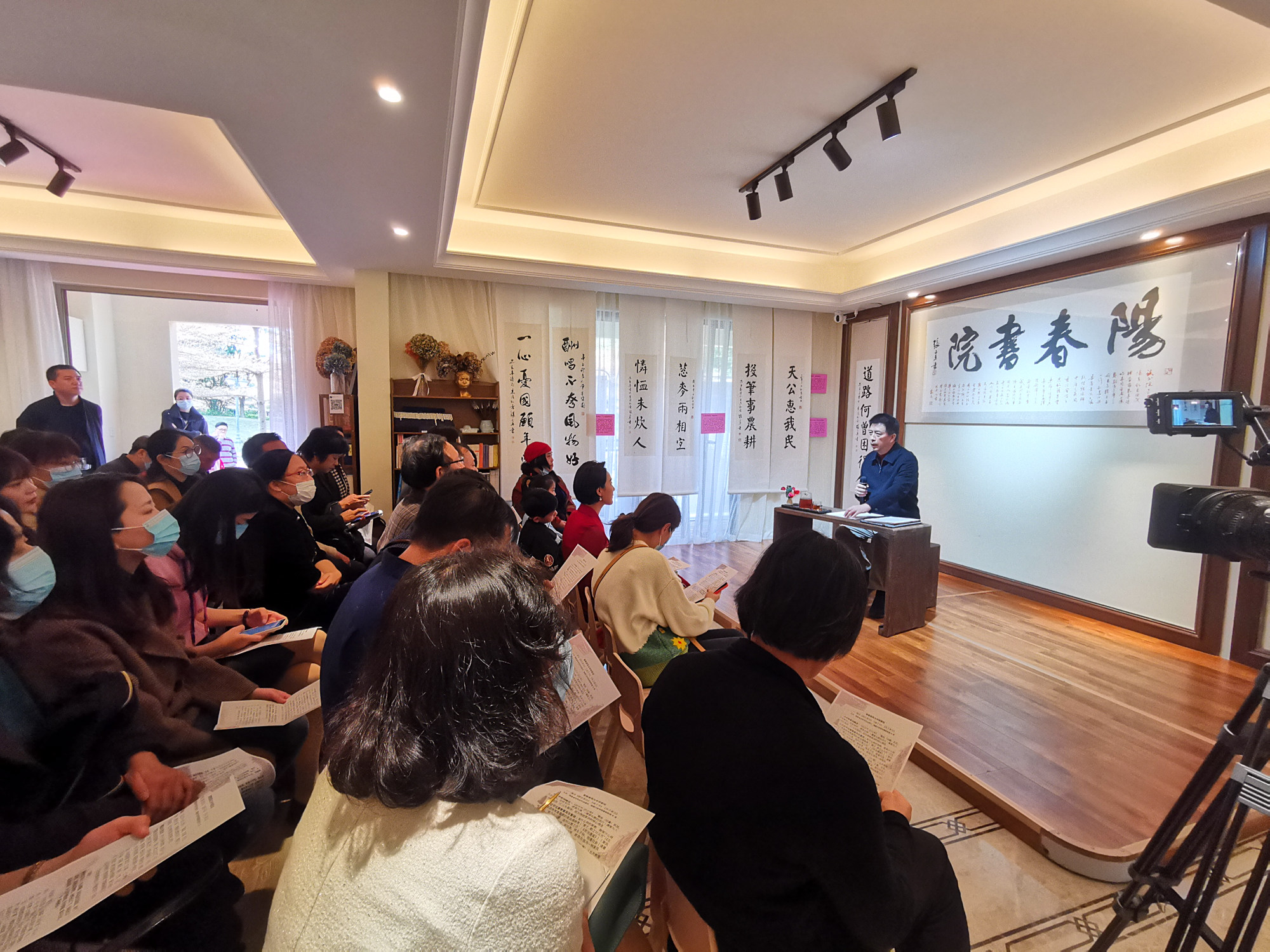 揭牌仪式上,福建省播音主持协会秘书长、阳春书院负责人朱朝阳表示,作为90后的她,创办的新时代书院—阳春书院,将尝试结合社区、社团等渠道传播优秀传统文化,从最小单元的基层百姓自身素养,修身、齐家开始,提高自己认知和能力,更好地服务社会。