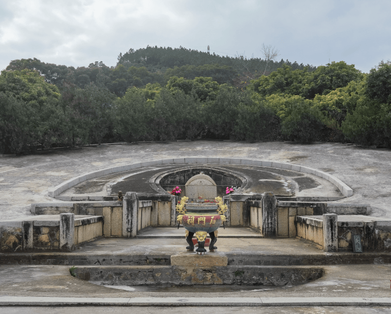 先生墓静卧于青山环抱之中,背靠紫云山,面朝壶公山,松竹环绕。墓园始建于明隆庆五年,以青石混凝土筑就,呈“风”字形,龟背纹坟丘古朴厚重,石面斑驳,满是岁月沉淀。墓前石埕层叠,半月池碧水澄澈,天光云影倒映其中。墓碑篆隶字迹苍劲,镌刻着后世对先生的无尽尊崇。东侧石门寝殿古朴肃穆,殿内香火袅袅,塑像端坐,尽显先生三教合一的思想内核;不远处的先生石雕像衣袂翩然,神情温润又坚毅,目光远眺,仿佛依旧牵挂着这方水土的百姓。