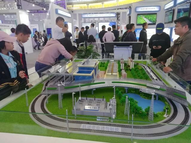 图为中国中铁电气化局集团有限公司展区里人潮如织。