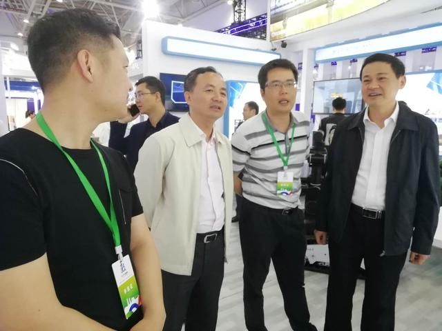 图为福建省发改委副主任张福寿(右一)和福州地铁集团副总经理杨建国(左二)莅临展区参观指导。