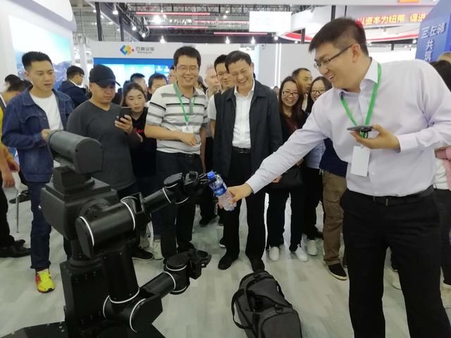 图为运维巡检机器人现场开包拿矿泉水给工作人员。