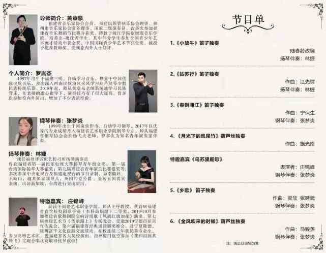 据了解,罗胤杰,1997年出生于福建三明,毕业于闽江学院蔡继琨音乐学院,自幼酷爱学习音乐,热衷于中国传统民族音乐,多次深入西南民族地区采风学习葫芦丝等少数民族传统乐器,2018年起,师从黄章泉老师系统地学习民族管乐,在老师的悉心指导下,演奏技巧有了很大提高,曾多次参加省内外演出,此次音乐会无论是编曲还是演奏都给人耳目一新的体验。(记者 郭超 郑胜平 文/图)