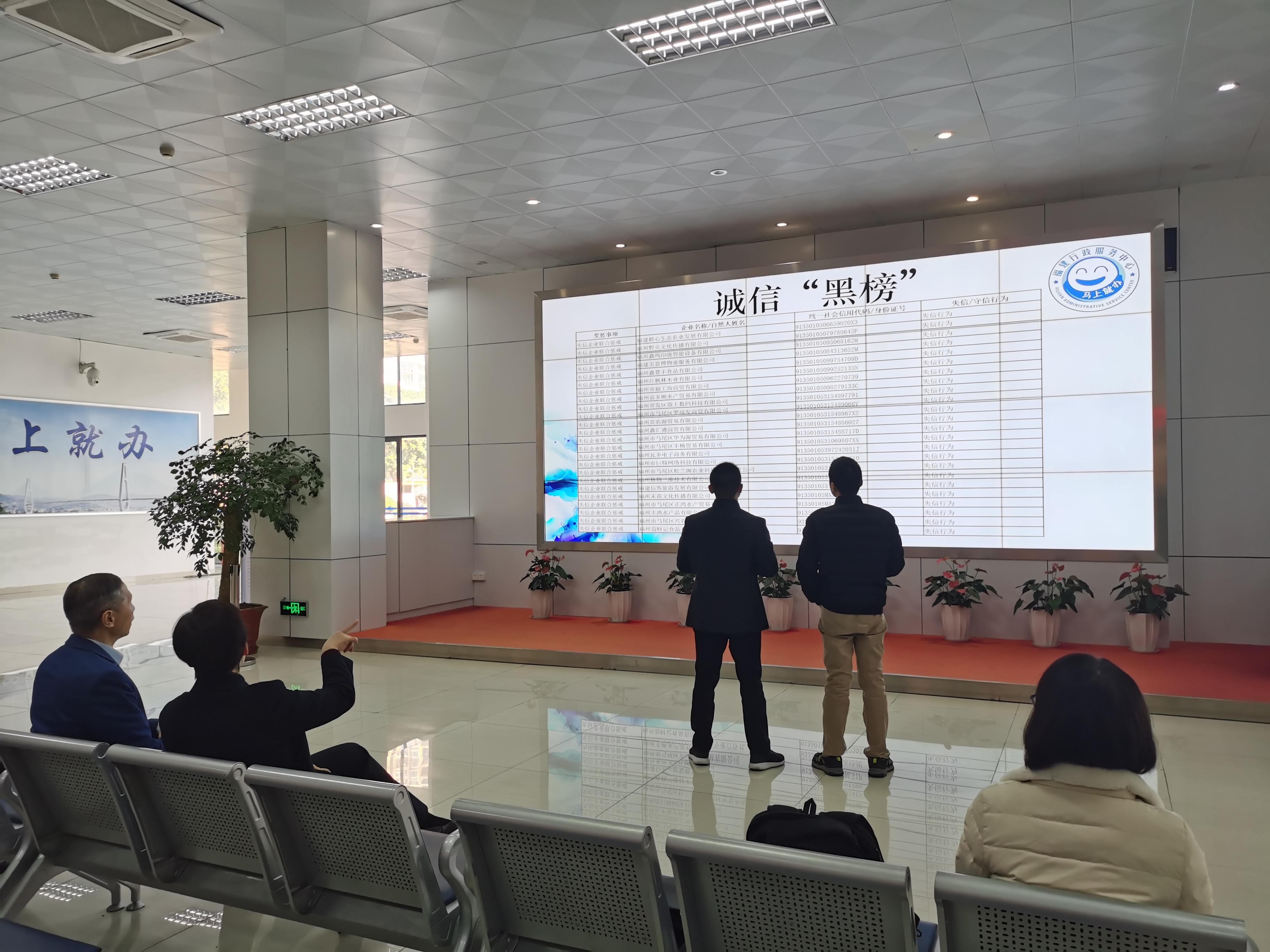 马尾区行政服务中心大厅LED屏幕上滚动播放“红黑名单” 马尾区委文明办 供图