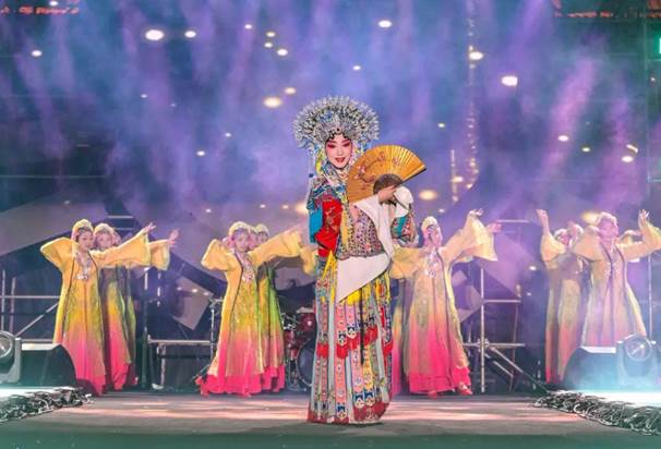 演出现场,欧得洋、王少峰、詹曼铃、姑慕·巴绍、林啟得、肖山等两岸歌手与8支两岸乐队倾情演唱,带来《孤单北半球》《中国人》《姐妹》《咏妈祖》等数十首歌曲,嗨翻全场。14位国际选美冠军头梳妈祖头,身着妈祖服或妈祖服元素的旗袍,惊艳亮相,展现东方美韵。上海京剧院青年演员蔡筱莹和湄洲妈祖祖庙天后艺术团携手带来的京剧《梨花颂》将妈祖文化与戏曲相结合,让观众在欣赏京剧的同时,更直观地感受到妈祖文化的深厚底蕴。