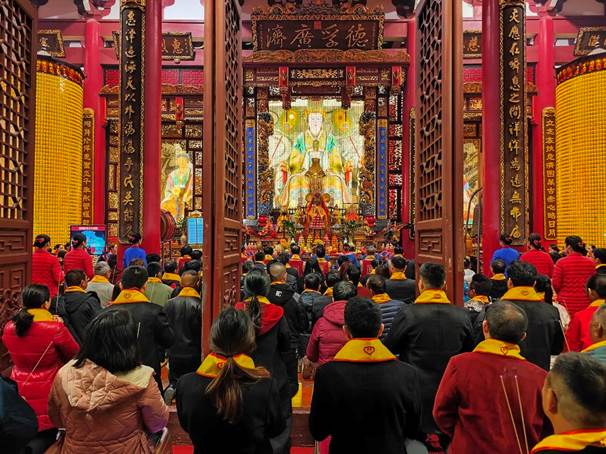 当日23时8分,湄洲妈祖祖庙董事会董事长林金赞携海内外妈祖信众同谒妈祖,跨年诵经祈福仪式在湄洲妈祖祖庙西轴线天后宫、南轴线天后殿同步举办。“两岸人同根、神同源,文化一脉相承。在这里,我深刻感受到了海峡两岸源远流长、割舍不断的妈祖情缘。”台湾中华道教联合总会创会总会长徐政佑说。