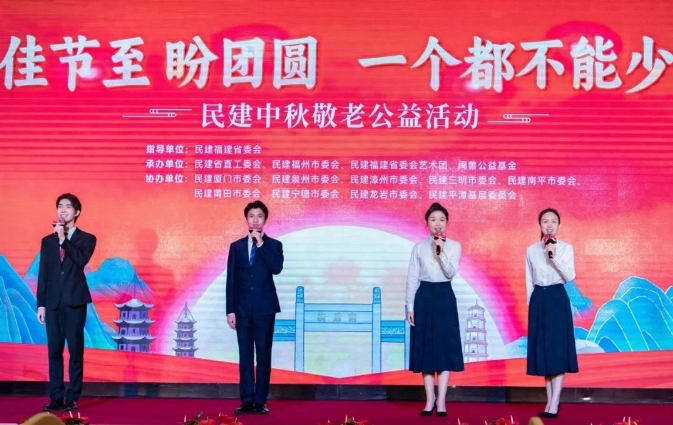 图为福州语歌曲协会主席赖董芳与团队人员现场进行歌曲弹唱表演 。